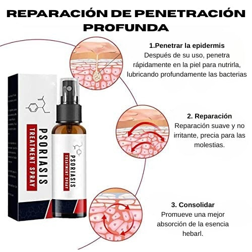 El 1° Spray Clínico para Psoriasis con tecnología nanoencapsulada que penetra 5x más rápido y alivia en 48 horas.